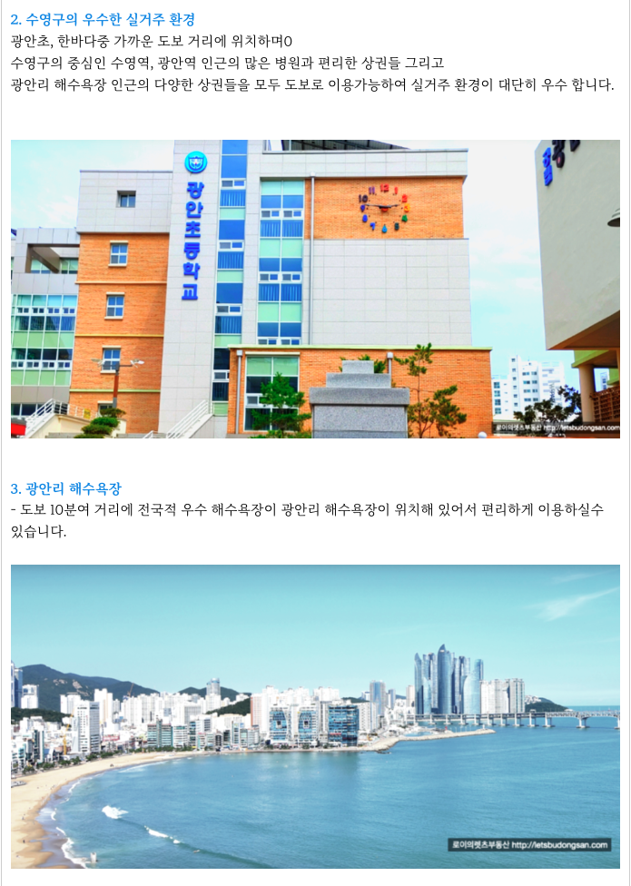 - 수영구 중심 광안동, 광안리 해수욕장, 주변시세 높은