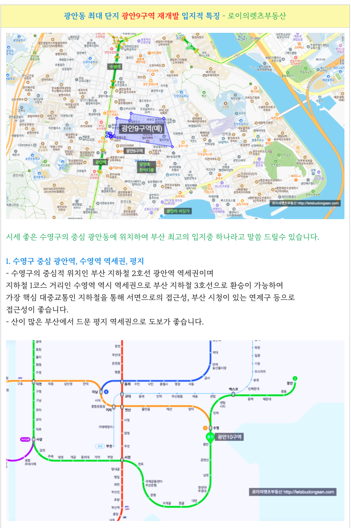수영구 주요 중심지 광안역과 수영역 사이에 위치해