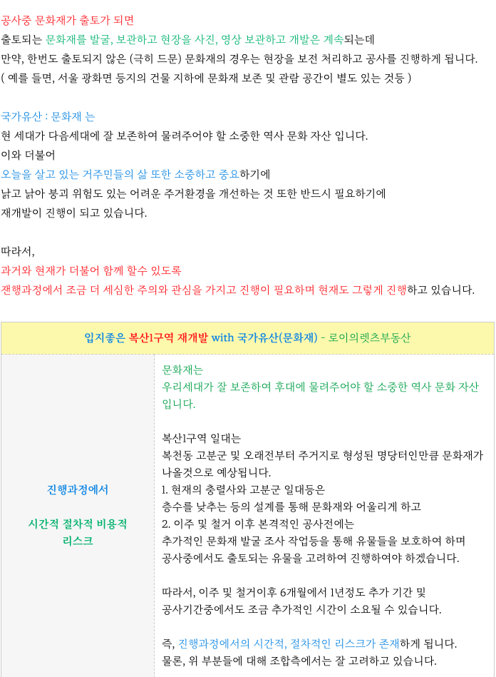 ( 문화재와 재개발 부분은 아래 별도 추가 설명 )