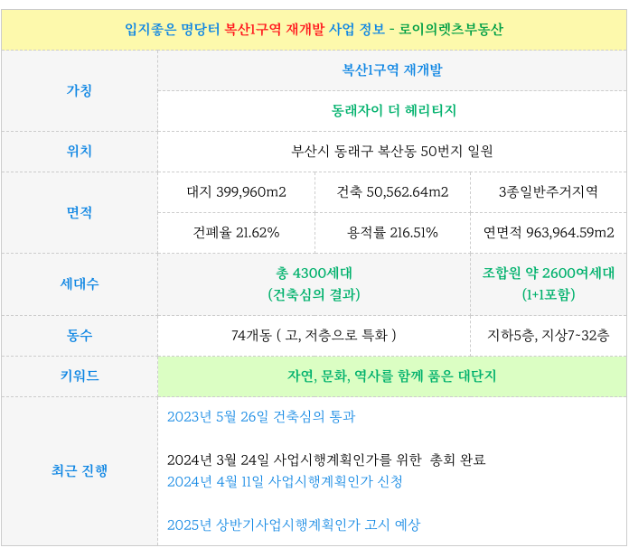 1. 복산1구역 재개발 : 간략 사업 요점 및 진행 간략