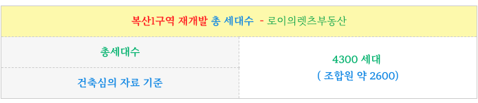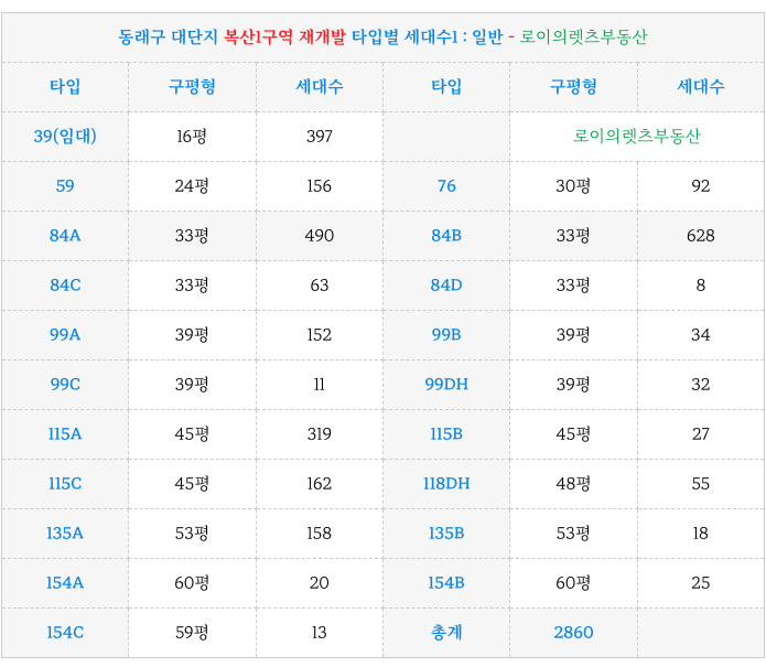 4. 복산1구역 재개발 : 현재 계획된 타입별 세대수