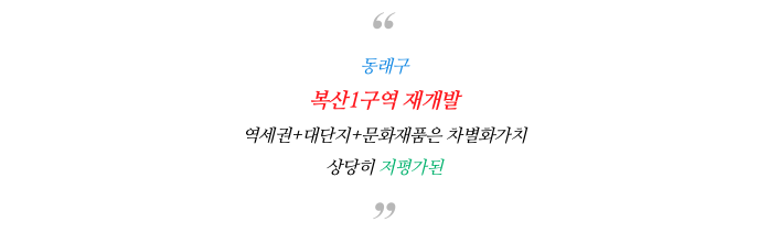* 실거주 좋은 동래구, 향후 차별화 미래가치 대단지 등 고려하면 상당히 저평가 되어 있습니다.