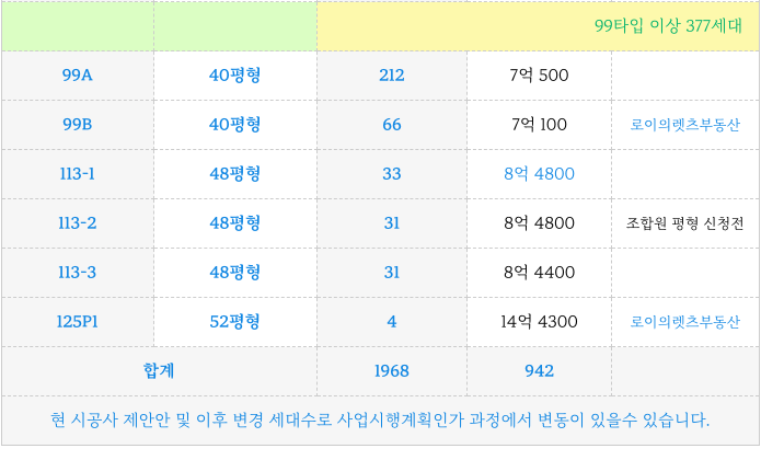 - 99타입 이상 공급 세대수는 377세대