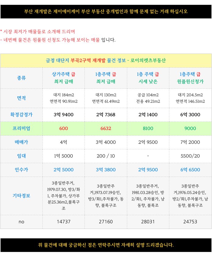 부산 전역 재개발에 대해 궁금하신 사항은 방문 또는 연락주시면 자세히 설명 드리겠습니다.