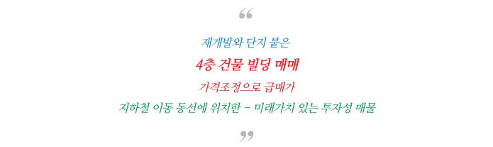재개발단지 맞붙은 미래가치 4층 건물 빌딩 매물 소개해 드리겠습니다.