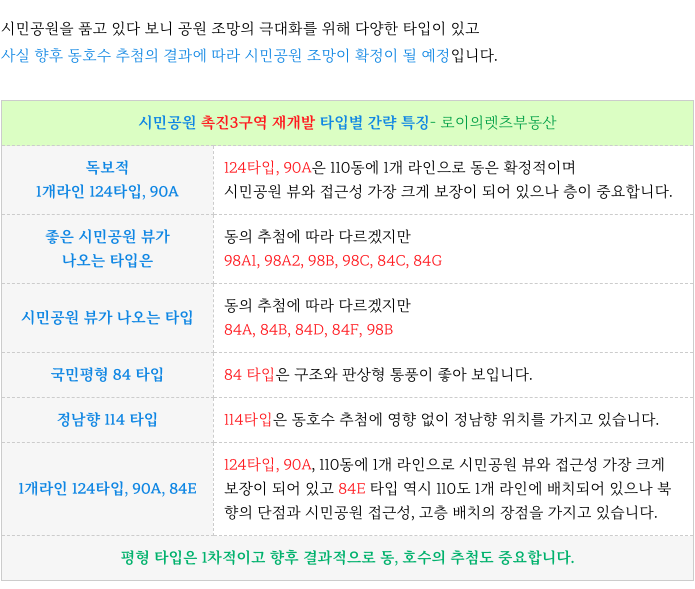 4. 시민공원 촉진3구역 재개발 : 계획된 각 타입별 세대수 :