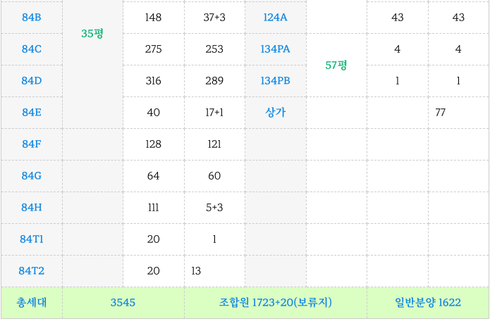 2) 전체 각타입별 세대수, 조합원 배정