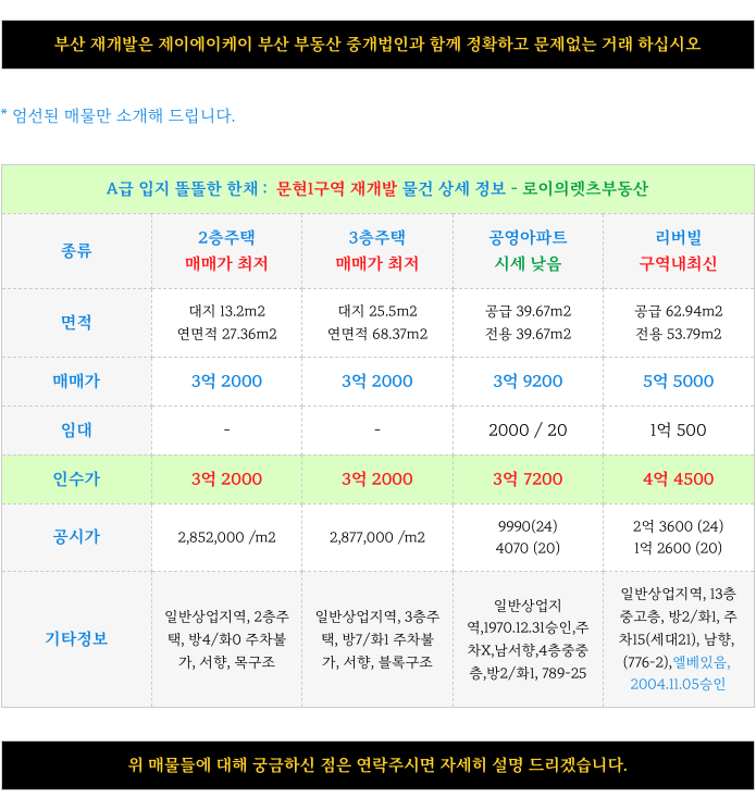 부산 전역 재개발에 대해 궁금하신 사항은 방문 또는 연락주시면 자세히 설명 드리겠습니다.