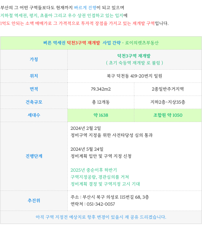 부산 전역 재개발에 대해 궁금하신 사항은 방문 또는 연락주시면 자세히 설명 드리겠습니다.