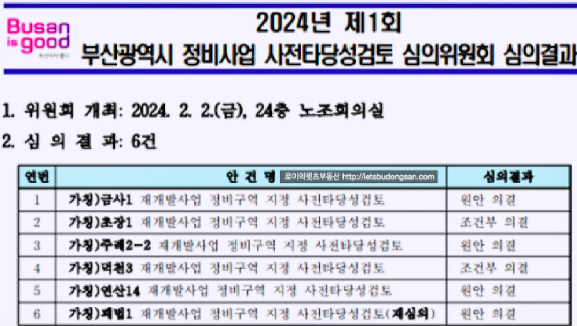 - 2024년 2월 2일 : 정비구역 지정을 위한 사전타당성 심의 통과 : 조건부 의결
