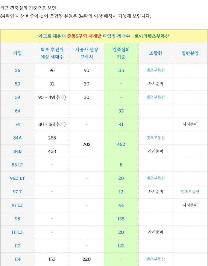 중동5 역시 조합원 비율이 높은것이 아쉬운 점이기는 하나