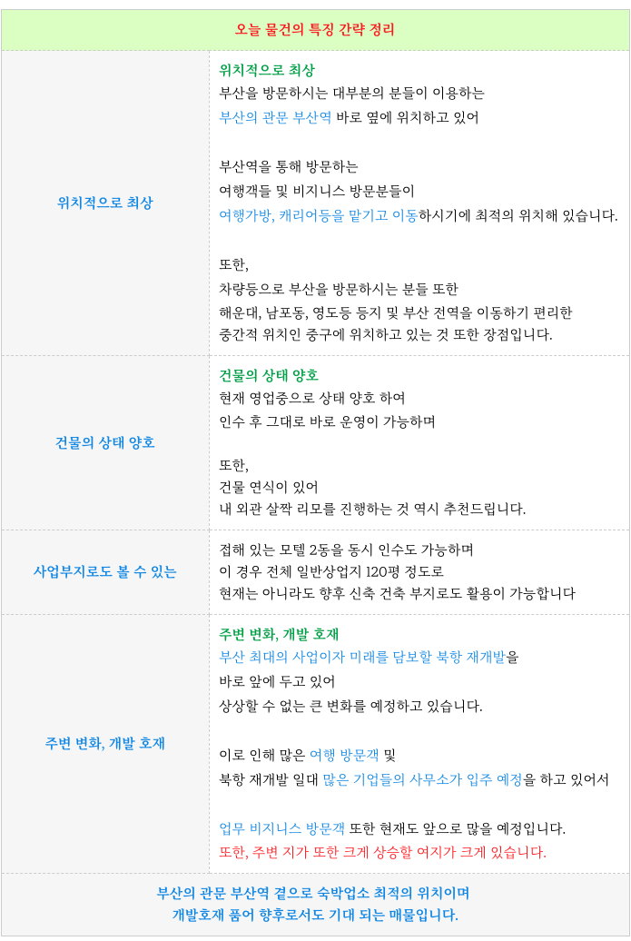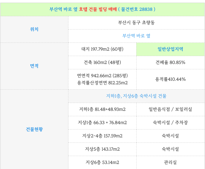 오늘 부산역 바로 옆 호텔 건물 빌딩 매매 정보 정리해 드리겠습니다. ( 물건번호 28838 )