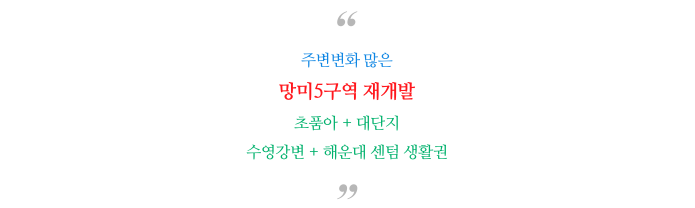 초품아 + 수영구 대단지 + 수영강변 + 해운대센텀 생활권 으로