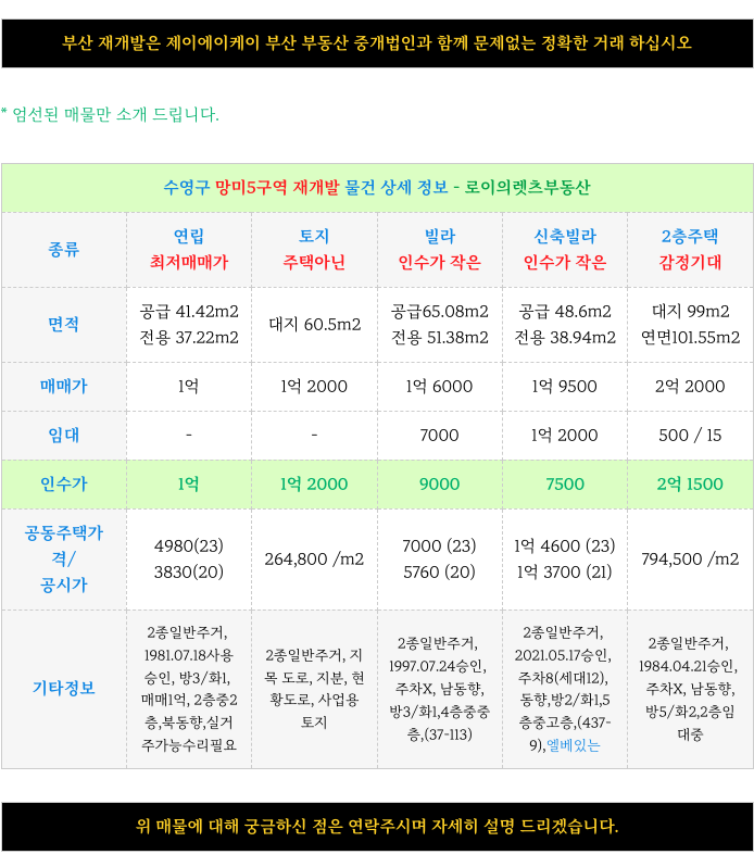 2. 현재 가능한 매물 소개 : 수영구 망미5구역 재개발 :