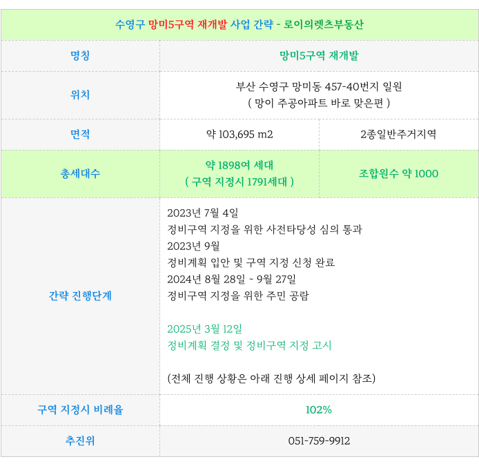 수영구 망미5구역 재개발 : 현재까지 진행 사항 & 예상 일정 체크 : 등 추가 정보는 아래 페이지를 참고 부탁드립니다.