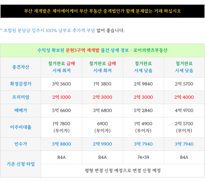 2. 문현3구역 재개발 : 현재 가능한 매물 소개 :