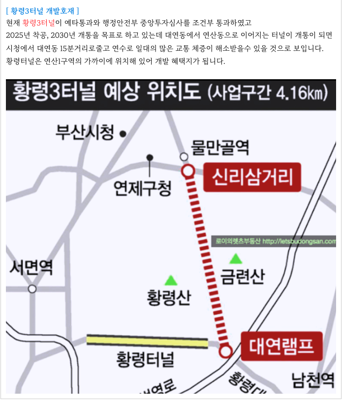 - 개발호재 : 황령3터널, 주변 재개발 다수 진행