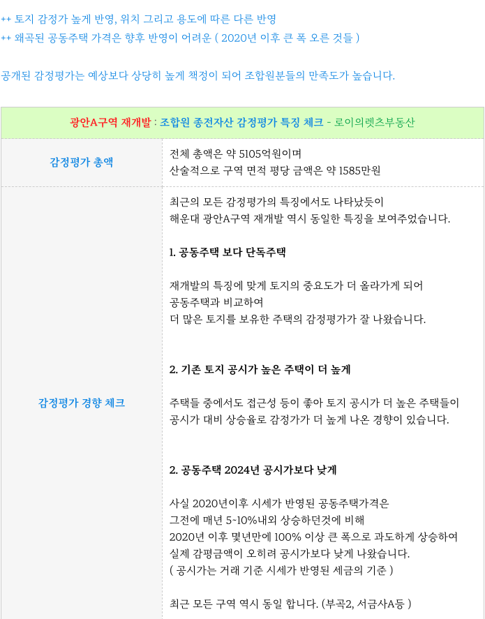 5. 조합원 감정평가 간략 분석 : 광안A구역 재개발 :