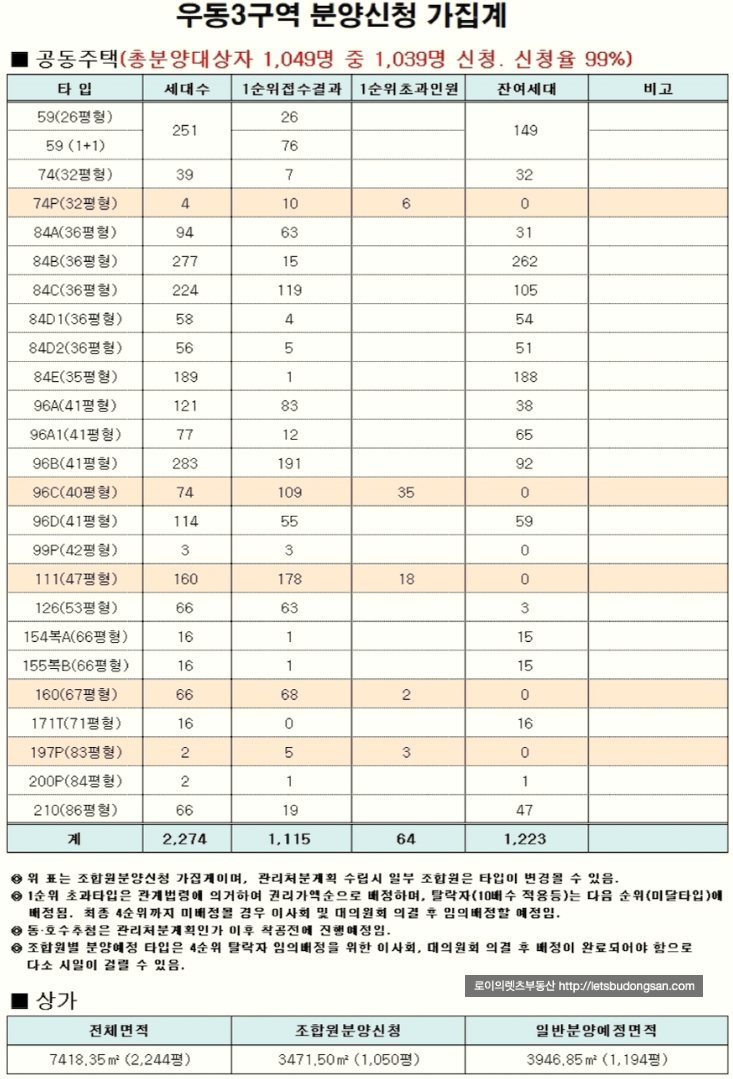 -> 이후 조합원 평형 신청 결과를 반영하여 총회를 거쳐 관리처분계획인가 신청 예정