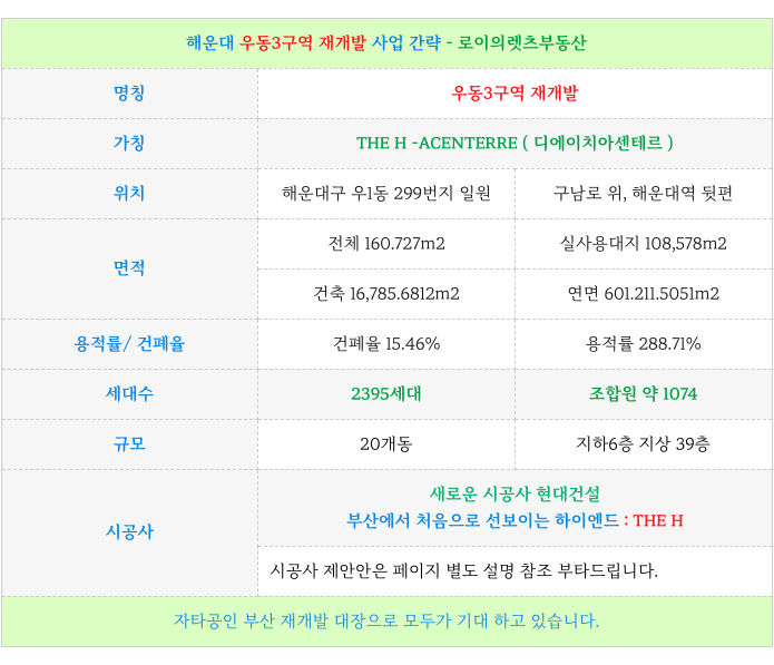 1. 우동3구역 재개발 : 사업 간략 요점 :
