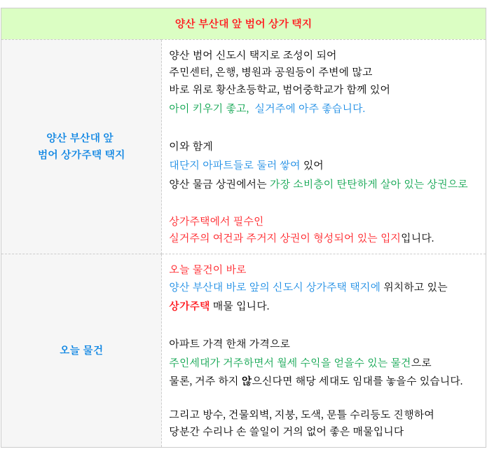 양산 상가, 주택, 토지 물건 접수 투자 받습니다.