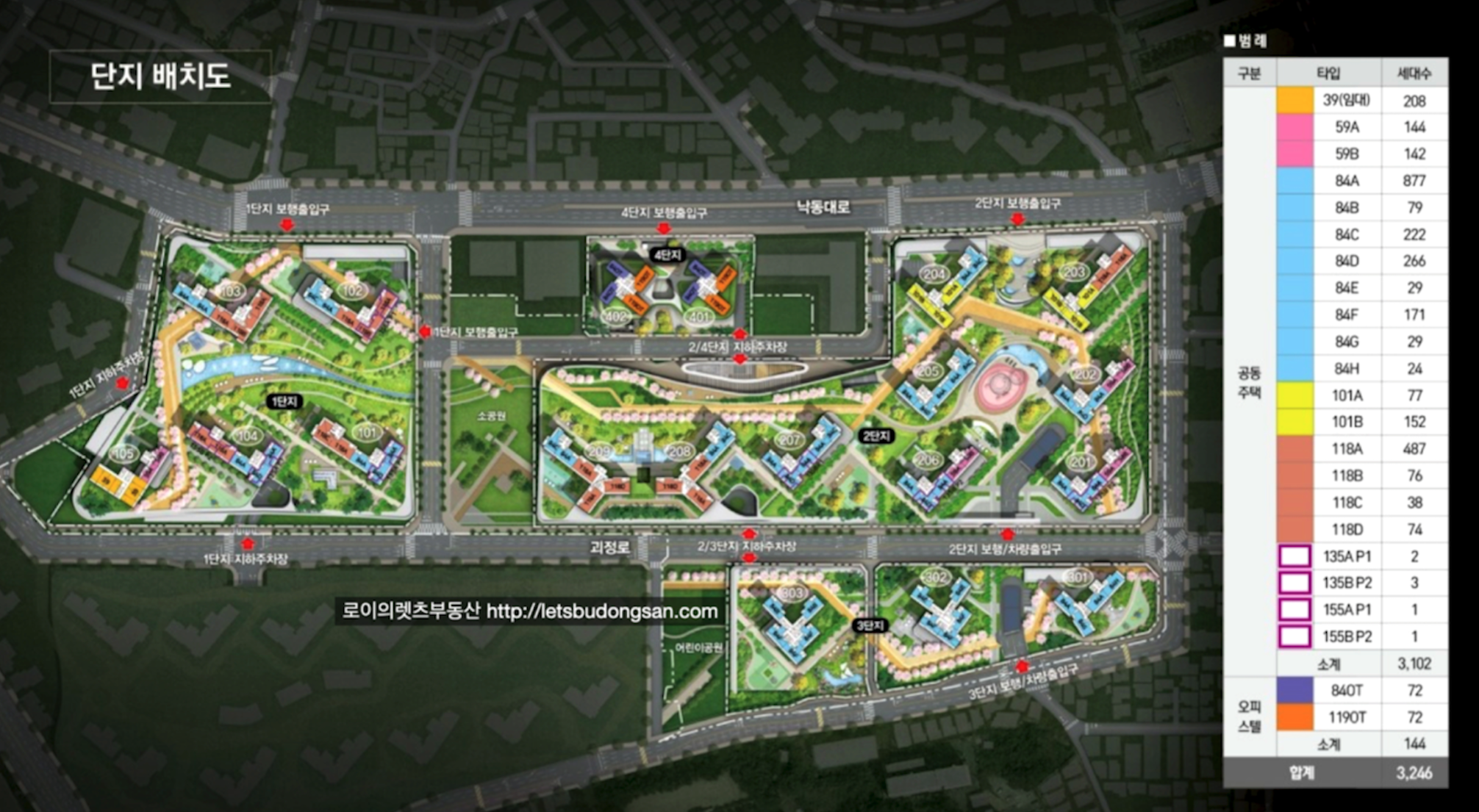 4. 괴정5구역 재개발 : 타입별 세대수 :