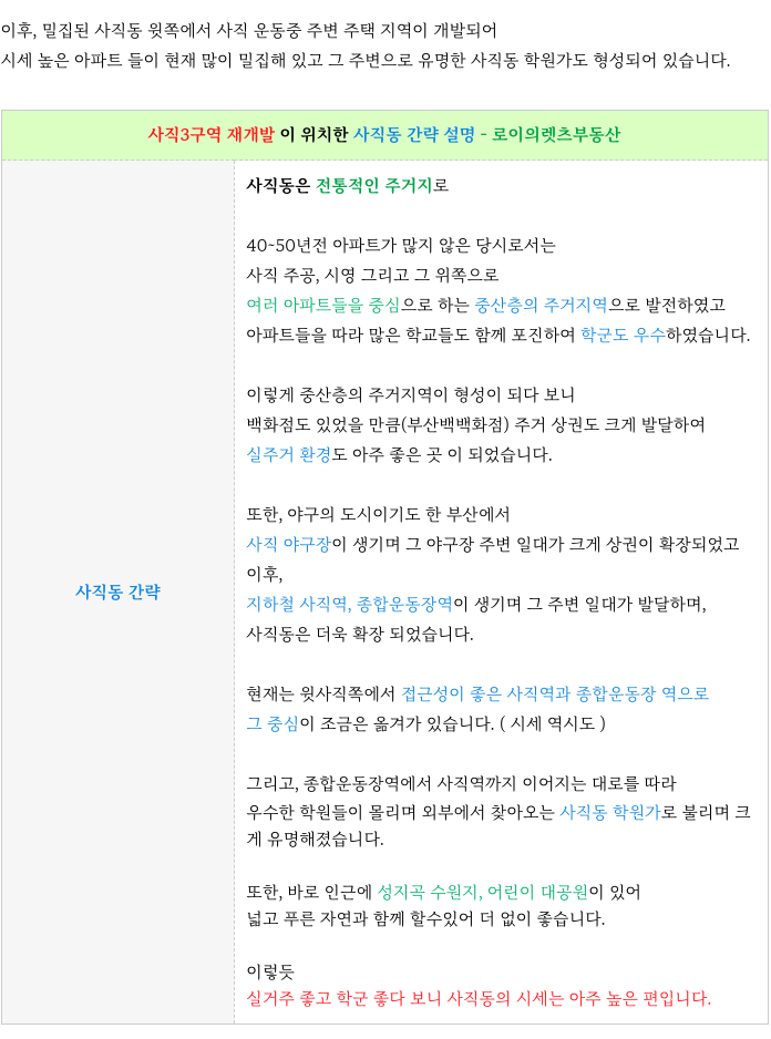 7. 재개발 사업 주요 특징 정리 : 사직3구역 재개발 :