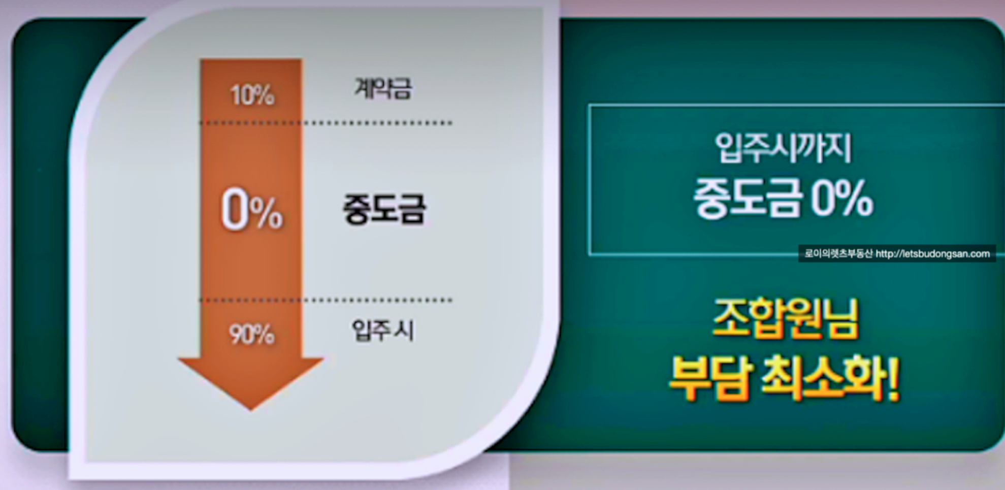 시공사에서는 조합원 분담금에서 중도금 없이 잔금시 90% 납부로 부담이 줄어 좋습니다.