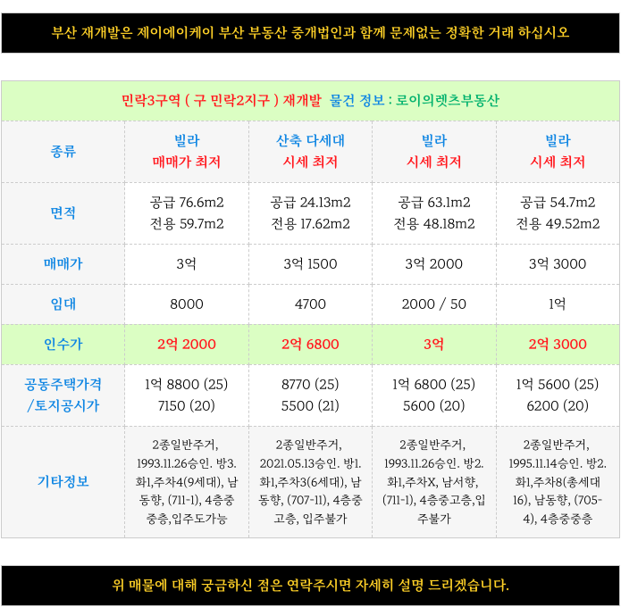 1. 현재 가능한 매물 소개 : 민락3구역 재개발 :