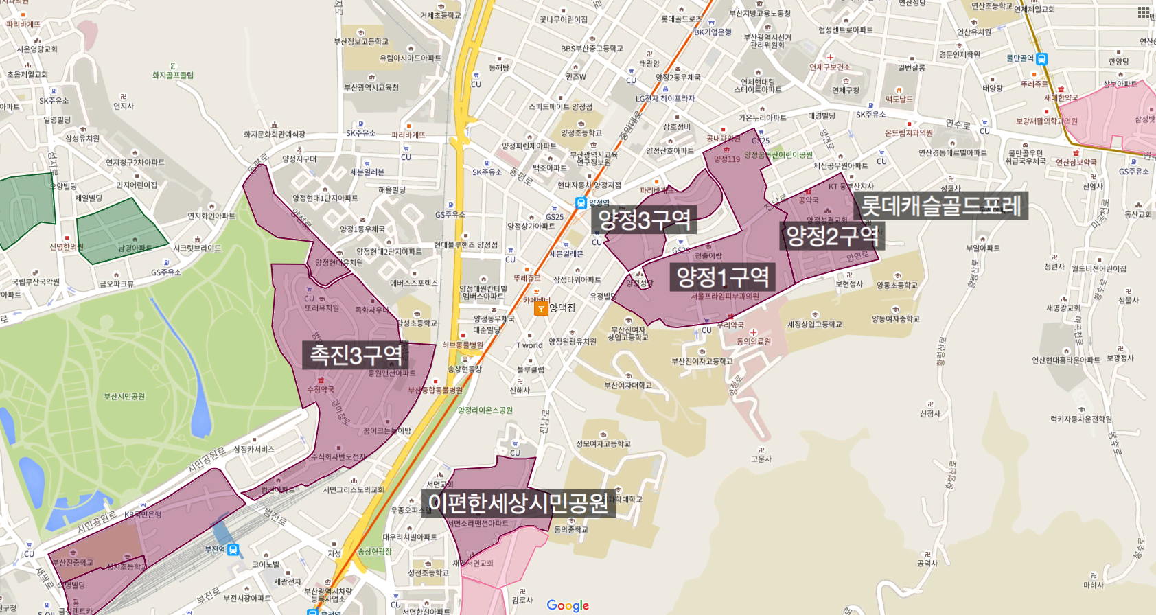 양정1, 2, 3구역, 전포1-1구역, 가야1구역, 범천1-1구역
