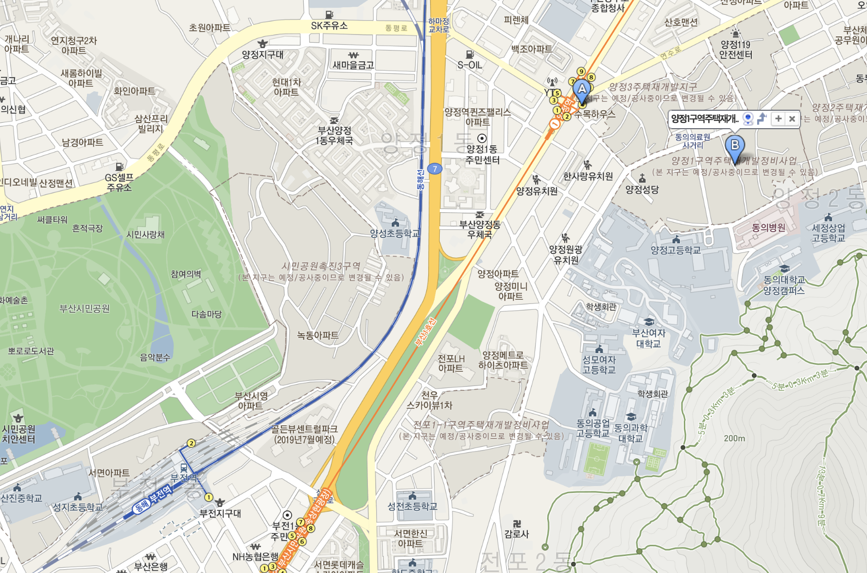 양정동의 재개발 구역은