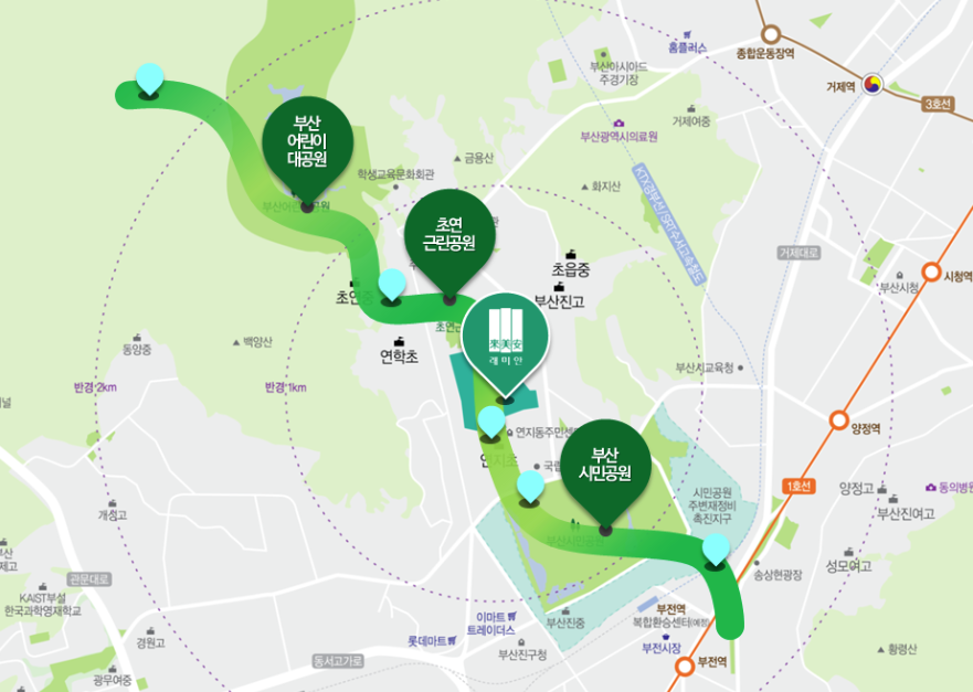 부산 시민공원을 앞에 두고 있어