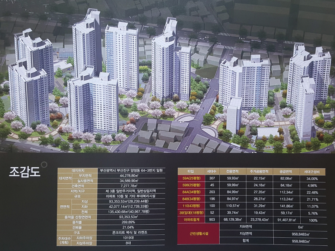 다소 단지가 많이 작아지는 영향이 있지만 양정3구역재개발은 903세대로 작지 않은 규모를 가지고 있습니다.