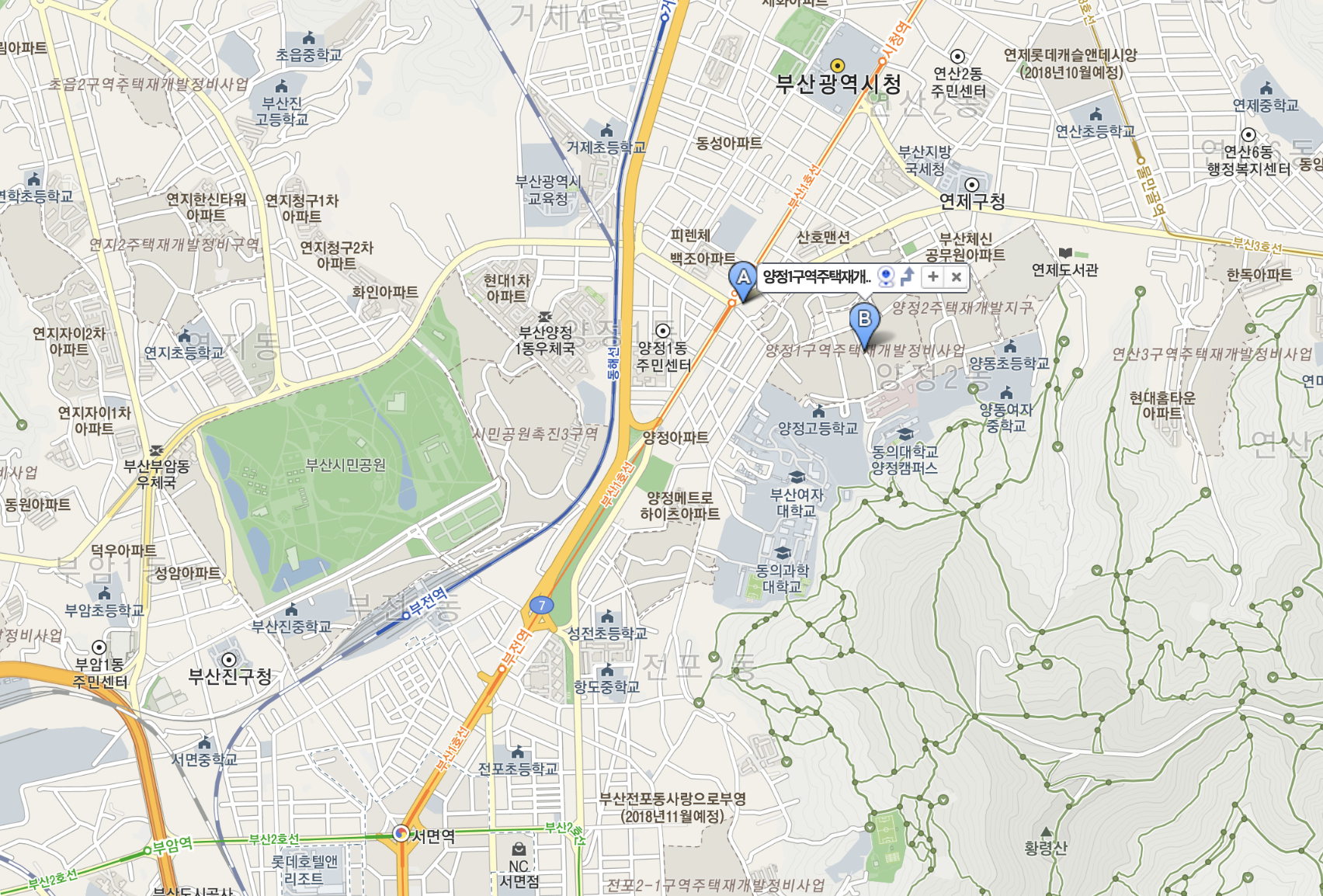 - 양정2구역 : KCC건설, 세대수 1116, 철거마무리중