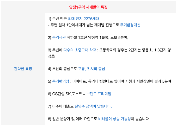+ 양정역 역세권 이라는 가장 큰 장점을 가지고 있으나 조합원 분양가가 다소 높습니다.
