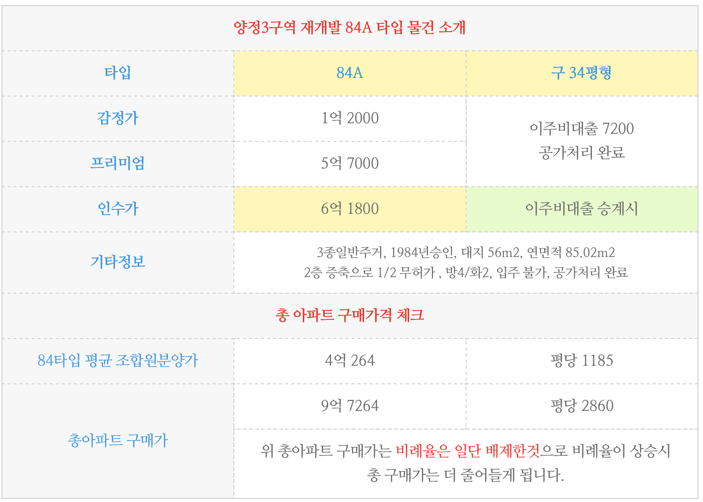 양정3구역 재개발 84A 타입 물건